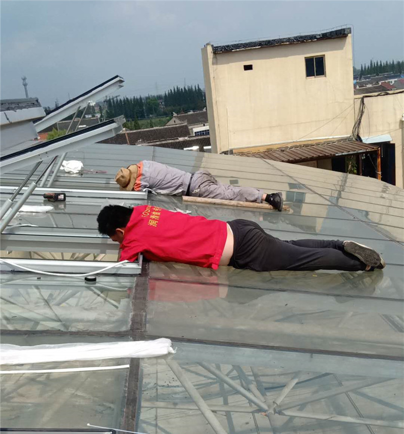 屋面滑、高是現(xiàn)場(chǎng)安裝的主要困難,鑫友售后人員憑借豐富的經(jīng)驗(yàn),嫻熟的技能,保證了安裝進(jìn)度。