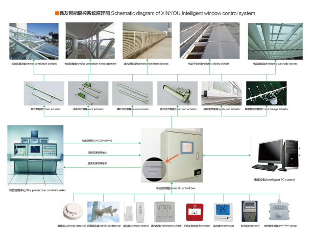 智能通風控制系統(tǒng)由智能控制箱、墻裝開關(guān)、遙控器、風雨感應器、開窗器等組成,用戶可根據(jù)日常室內(nèi)環(huán)境的變化,通過遙控器或者開關(guān)來對窗戶進行開啟和關(guān)閉的控制。